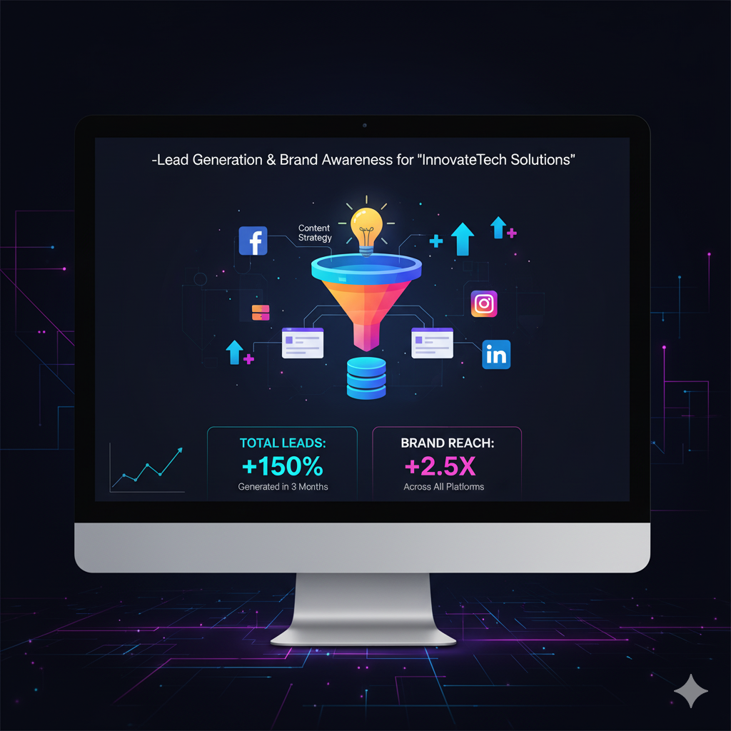 Pixel Edge partnered with InnovateTech Solutions to amplify their digital presence and drive business growth. Our custom-tailored strategy focused on Lead Generation and Brand Awareness, leveraging a data-driven content approach across key social media platforms like Facebook and Instagram
